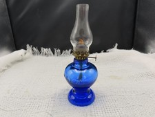 ANTIQUE MARKED HANDY COBALT BLUE MINIATURE OIL LAMP 7-1/4" TALL P&A BURNER