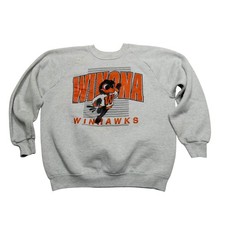 VINTAGE Winona Winhawks Sweater Mens M Gray High School Football Crewneck Fleece