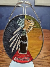 Coca-Cola Oval Sun Catcher-Stained Glass Window Hanging W/Chain Sun/Winter