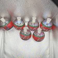 Coca Cola Christmas Stained Glass Look Light Cover Balls Set of 6 New 1997