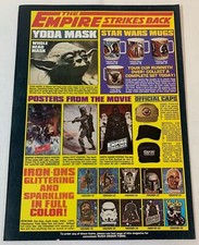 1981 Star Wars EMPIRE STRIKES BACK merch ad page~Yoda mask,cups,posters,caps,etc