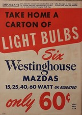 1950's Westinghouse Mazda Light Bulbs Advertising Paper Sign “Last One”