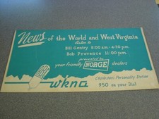1940's Charleston WV WKNA 950 ABC Radio Advertising Sign Bob Provence Norge 21"