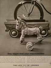 1961 life insurance of Virginia vintage toy pedal car bicycle horse ad
