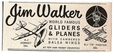 1962 JIM WALKER Toy Gliders Plane Balsa Wood Vintage Print Ad