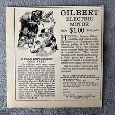 1936 Gilbert Electric Motor Vintage Magazine Ad Quarter Page Toy Science