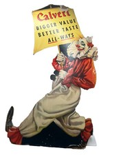 Vintage Circus Clown Calvert advertising Cut Out Sign