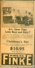 Advertising Children's Kitchen Set Toy xmas Finke Evansville IN 1916