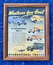 Vintage Framed 1938 International Harvester Trucks Advertising Poster Print Ad