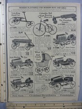 Rare Original VTG 1920 Toy Baby Coach Boycycle Gimbel Bros Advertising Art Print