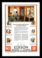 Original 1923 "Edison Mazda Lamps" Ladies at Their Mirrors Antique Print Ad