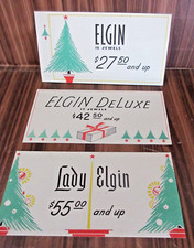 3 VTG Elgin Advertising CARD ELGIN WATCH JEWELRY STORE Display Sign