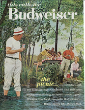 1963 BUDWEISER Beer Can Busch Picnic Stream Vintage Magazine Print Advertising