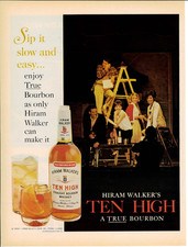 1965 HIRAM WALKERS TEN HIGH Bourbon Bottle Vintage Magazine Print Advertising