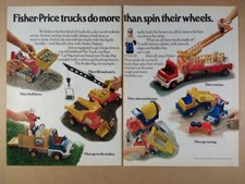 1980 Fisher-Price Toy Trucks dozer crane cement dump rodeo race vintage print Ad