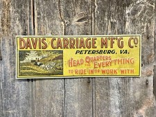 Antique 1900s Embossed Davis Carriage Mfg Co Early Advertising Sign Cool Graphic