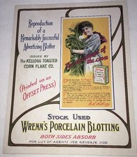 Kelloggs Cereal Wrenns blotting Sign Advertising Blotter Mfr Cardboard 1913