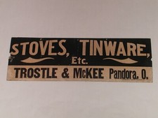 Stoves, Tinware Etc. Trostle & McKee Pandora, Ohio Antique Advertising Sign