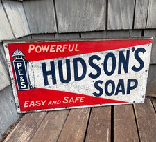 1920s HUDSON'S SOAP Metal Advertising Country Store flange Sign