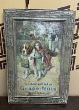 Antique 1912 Grape Nuts Tin Lithograph Advertising Sign 20”x30” Scarce