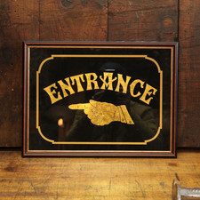 Vtg Antique Reverse Painted Glass Entrance Pointing Finger Hand Advertising Sign