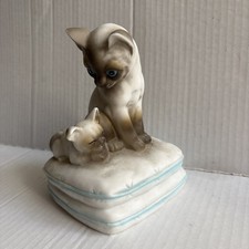 VINTAGE PORCELAIN CAT FIGURINE MUSIC BOX SIAMESE CAT DESIGN