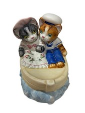 Vintage 2 Cats In a Boat Mann Porcelain Music Box Wind Up It’s A Small World