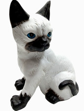 Vintage Ceramic Siamese Cat Kitten Figurine Music Box plays Memory from Cats BW
