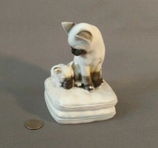 Vintage Mann Music Box Siamese Cat +Kitten Hand Painted Porcelain Japan Adorable