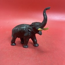 Leather Elephant Figurine with Raised Trunk and White Tusks Antique Collectible
