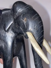 Antique Elephant Ebony Wood Hand Carved Large Figurine