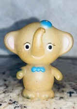 Vintage 3" Rubber Elephant Toy Blue Yellow Squeaker Japan