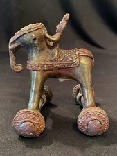 Vintage Brass Elephant Toy/ Elephant On Wheels, Temple Toy, Brass Animal