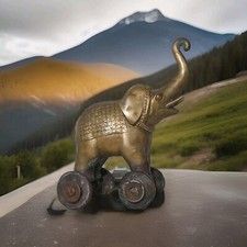 Toy Elephant Wheel Vintage Bronze Old Piece Collectible Home Decor