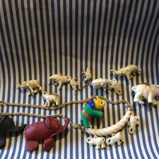 Vtg Elephant Figurine Toy Necklace Leather Keychain Pendant Charm Plastic Lot