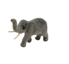 Vintage Flocked Gray Trunk Up Elephant 3" Figurine Toy