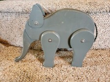 Vintage Primitive Hand-Painted Articulating Wooden Circus Elephant Toy Gift
