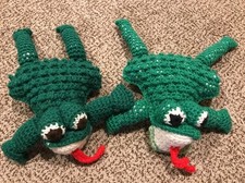 Lot of 2 Vintage Hand Made Crochet Yarn Toy Stuffed Animal Frog Doll
