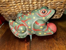 Small Vintage Painted Polka Dot Wooden Frog Toy Figurine Gift Movable Joints