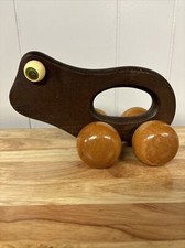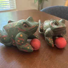 Vintage Wooden Frog with Roller Toy Made In Indonesia