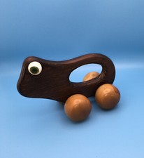 Vintage Hand-Carved Wooden Frog with Roller Toy from Indonesia