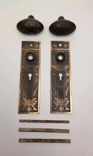 Antique Eastlake Complete Door Knob Set With Engraved Mortise Face Plate & Key