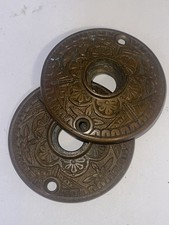 Antique Pair Of Norwich Door knob Eastlake Rosette Ornate Brass