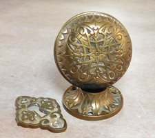 Antique Brass Door Knob Backplate Set of 2 Keyhole Escutheon Victorian Eastlake