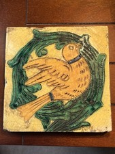 Antique Italian Napoli Ceramic Hand Painted Dove Tile Artist Signed