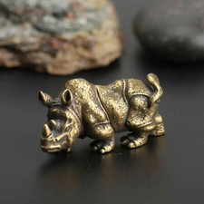 Antique Mini Brass rhinoceros Figurines Vintage Animal Statue Home Decor Toys US
