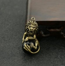Rare Chinese Art Old Brass Lion Pendant Toys Statues Figure Pet Antique Ornament