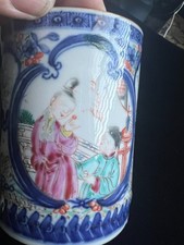 Antique Chinese Porcelain Figural Cup Mug Tankard 1800+ AS IS