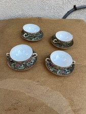 Vintage Antique Set of 4 Cups Chinese Porcelain Coffee Signed 389gr Rare