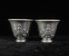 1 Pair of Old Chinese Silver Bronze Cups "Xuan" Marked